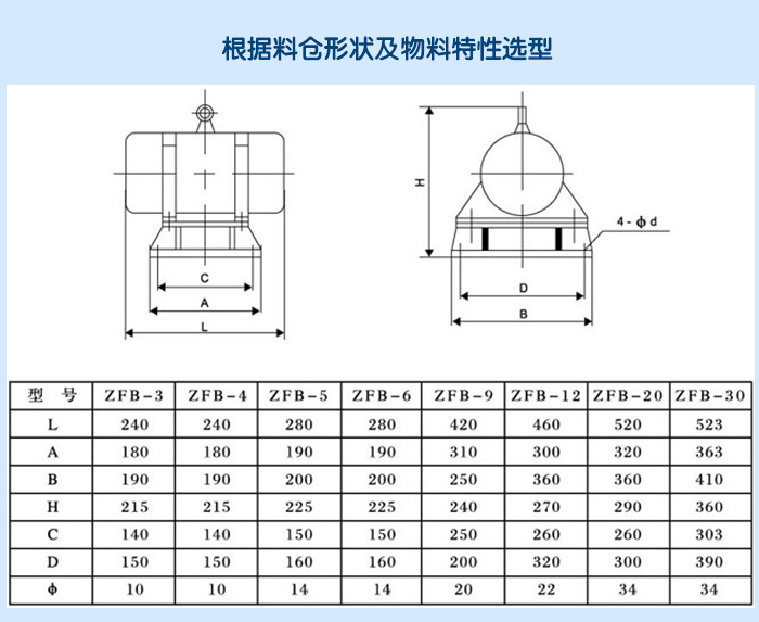 2、如圓錐形料倉因其表面剛度較大,可適當選擇振動力偏大的,棱錐形倉料可適當偏小;